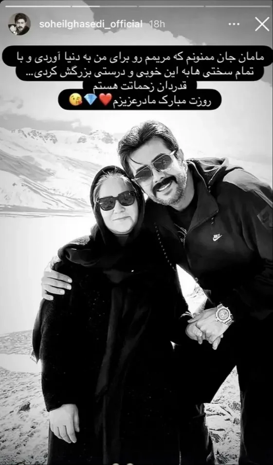 سهیل قاصدی در پیامی کوتاه و صمیمی، روز مادر را به مادر مریم مومن تبریک گفت و آرزوی داشتن دامادی همچون خودش را برای همه بیان کرد. او خاطرنشان کرد که اگرچه تنها با نوشتن این جمله کوتاه نمیتوان از مادران این عالم قدردانی کرد، اما قلباً قدردان تمامی زحمات بیوقفه آنهاست.