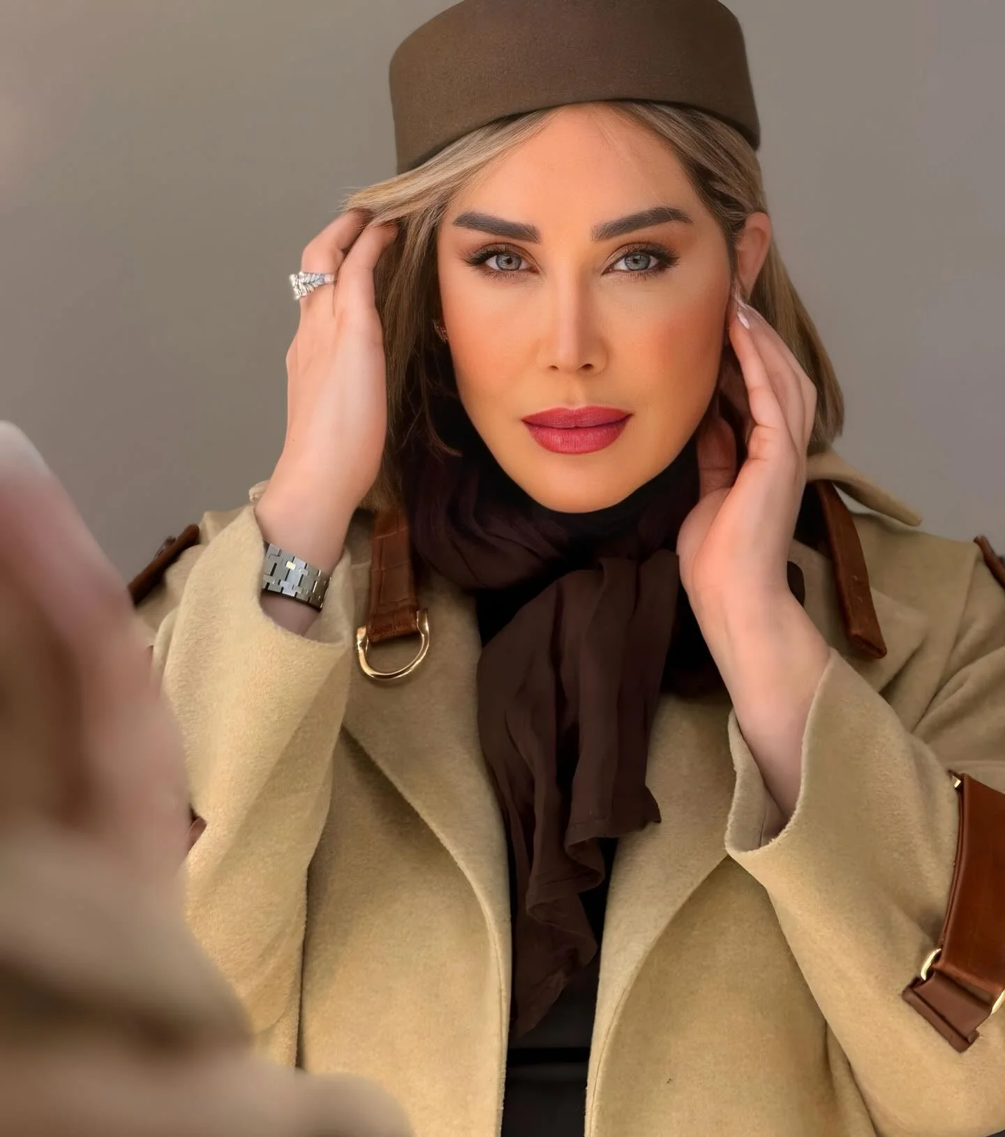 استایل جذاب همسر محمد علیزاده؛ سارا منجزی پور با کت بلند چقدر شیک شده!