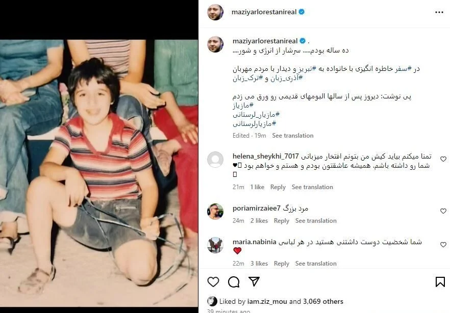 مازیار لرستانی با انتشار تصویری از دوران کودکیاش در 10 سالگی، با تیپ خاص جنگی و پسرانهاش توجه کاربران را به خود جلب کرد.
