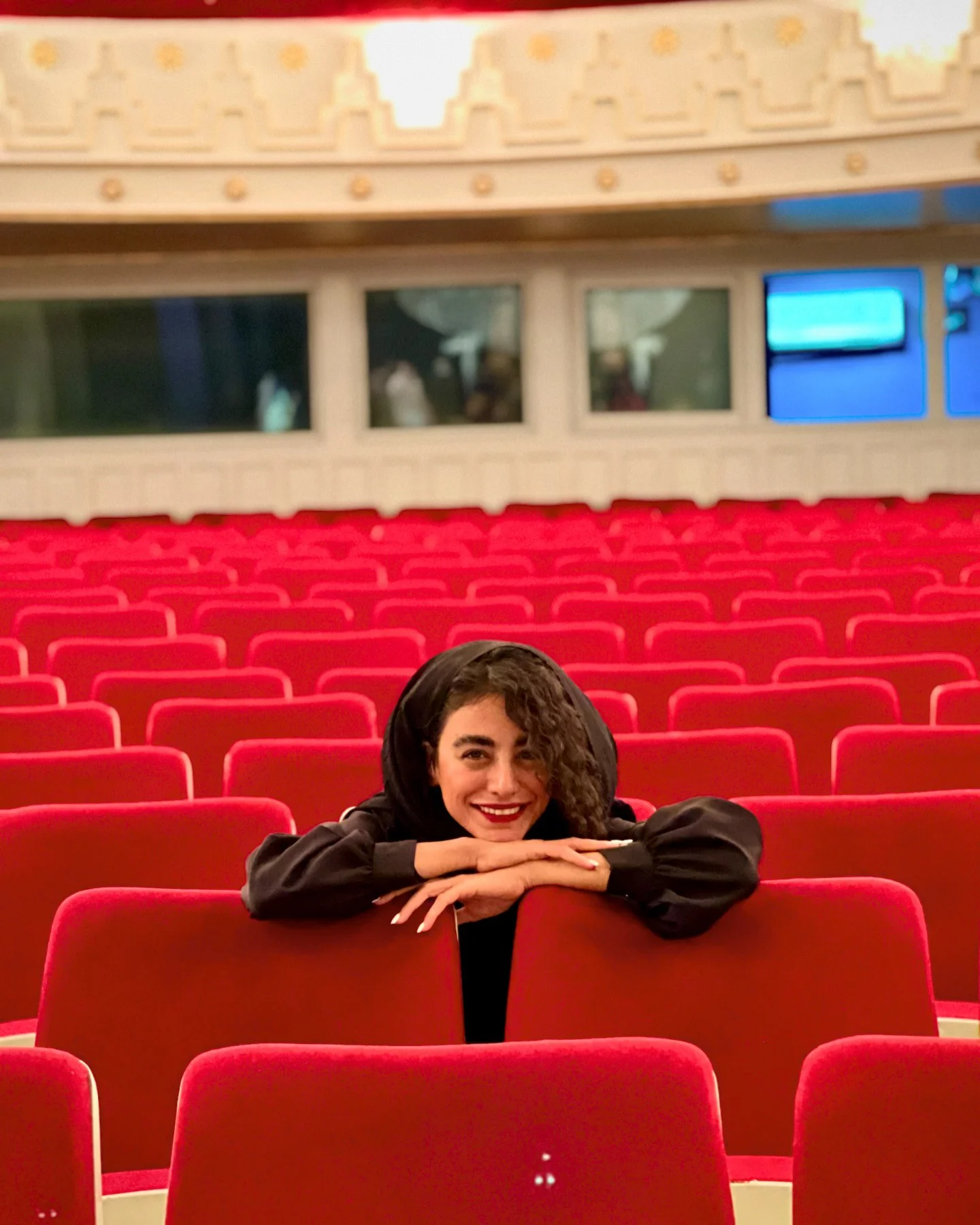 عکسی از نازنین کیوانی بین صندلیهای تئاتر در ادامه ببینید.