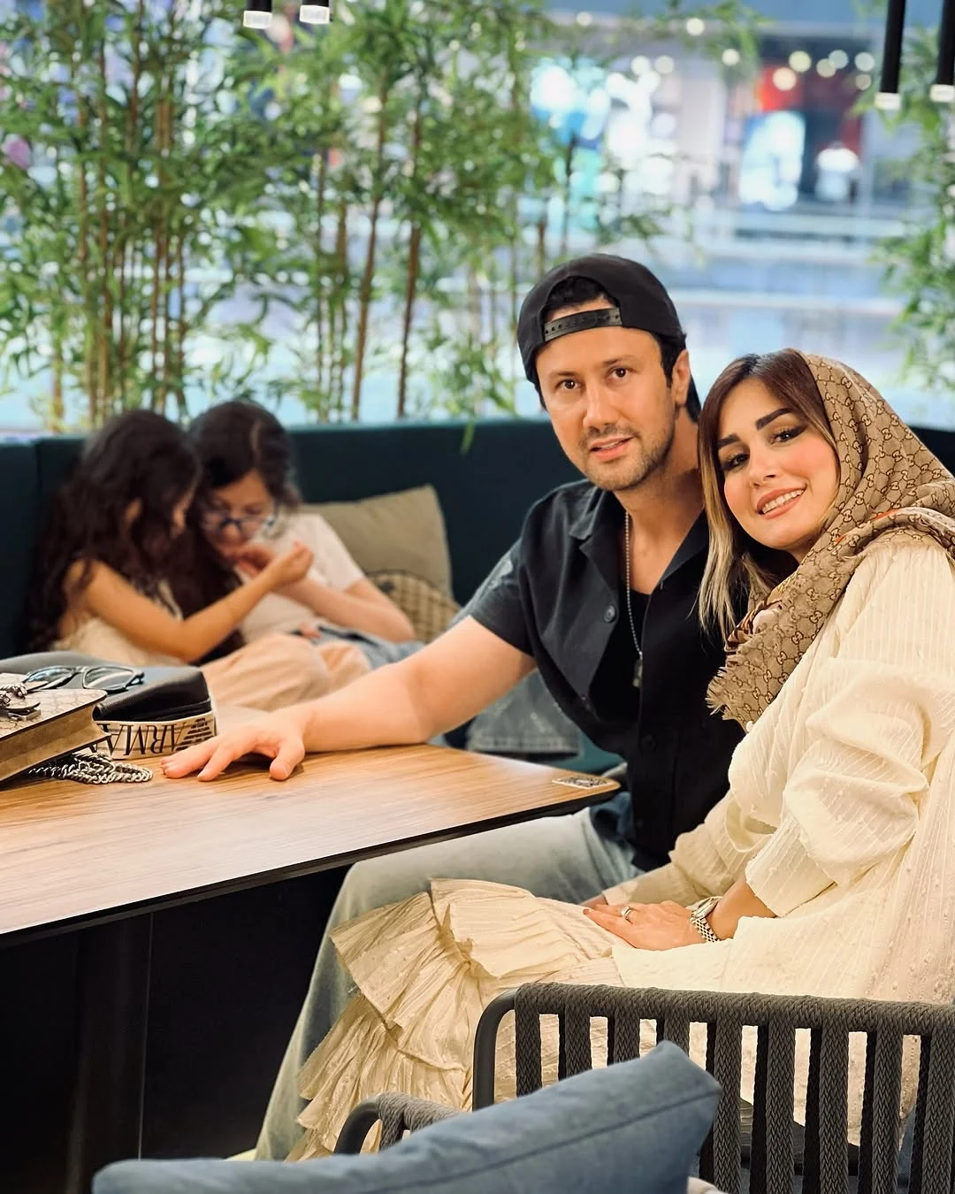 کافه گردی شاهرخ استخری و همسرش با نبات و پناه؛ چه خانواده بامزه و نازی