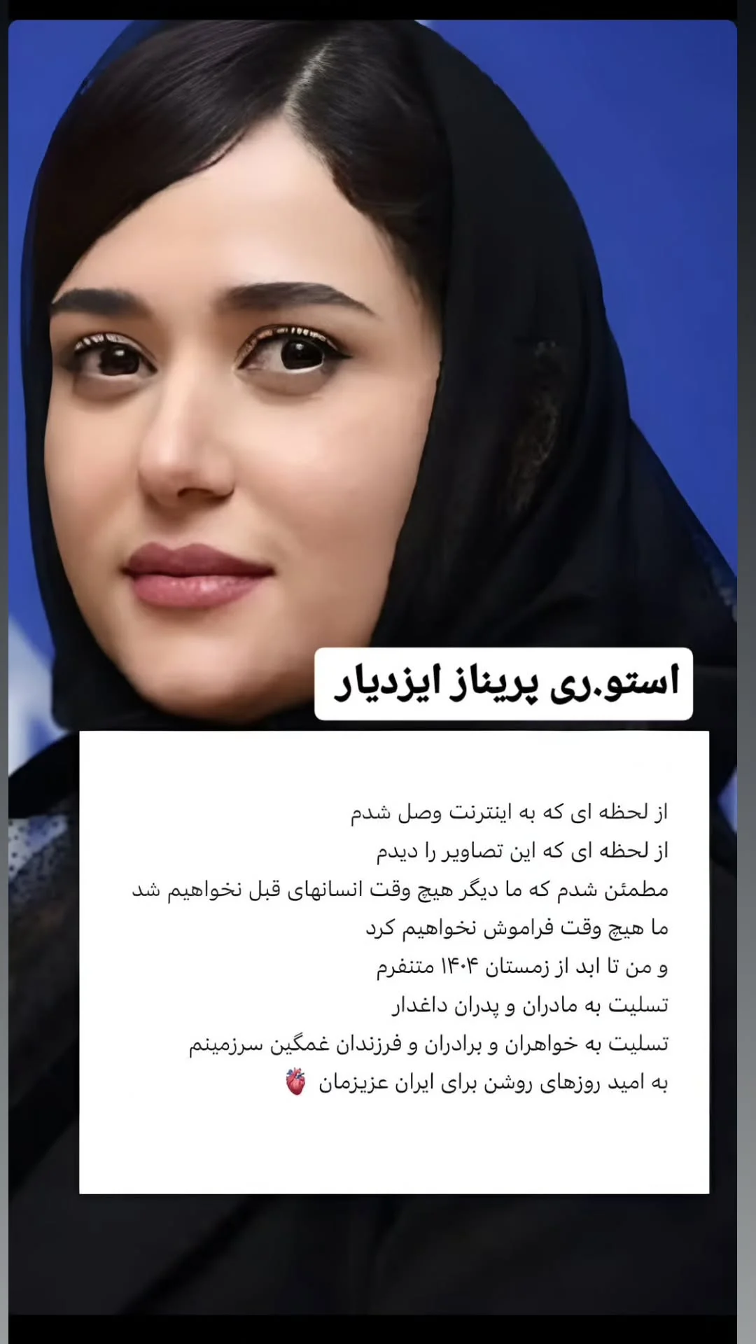 استوری| واکنش غمانگیز پریناز ایزدیار: تا ابد از زمستان ۱۴۰۴ متنفرم
