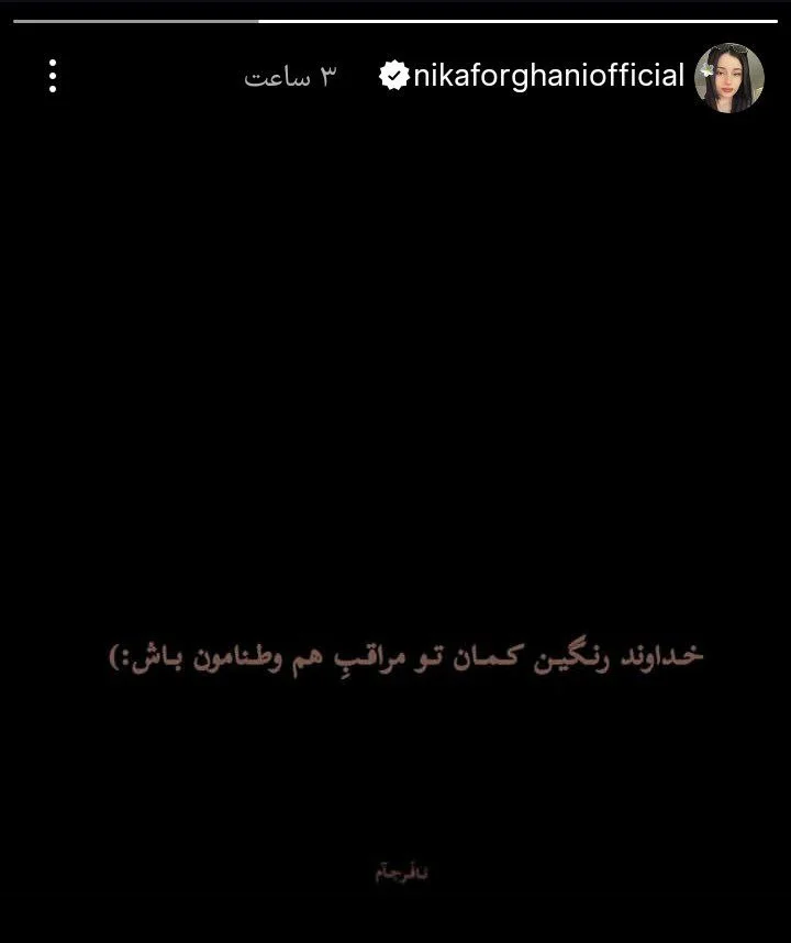 استوری| عکس ناراحت کننده نیکا فرقانی بازیگر پایتخت؛ خدایا مراقبمان باش