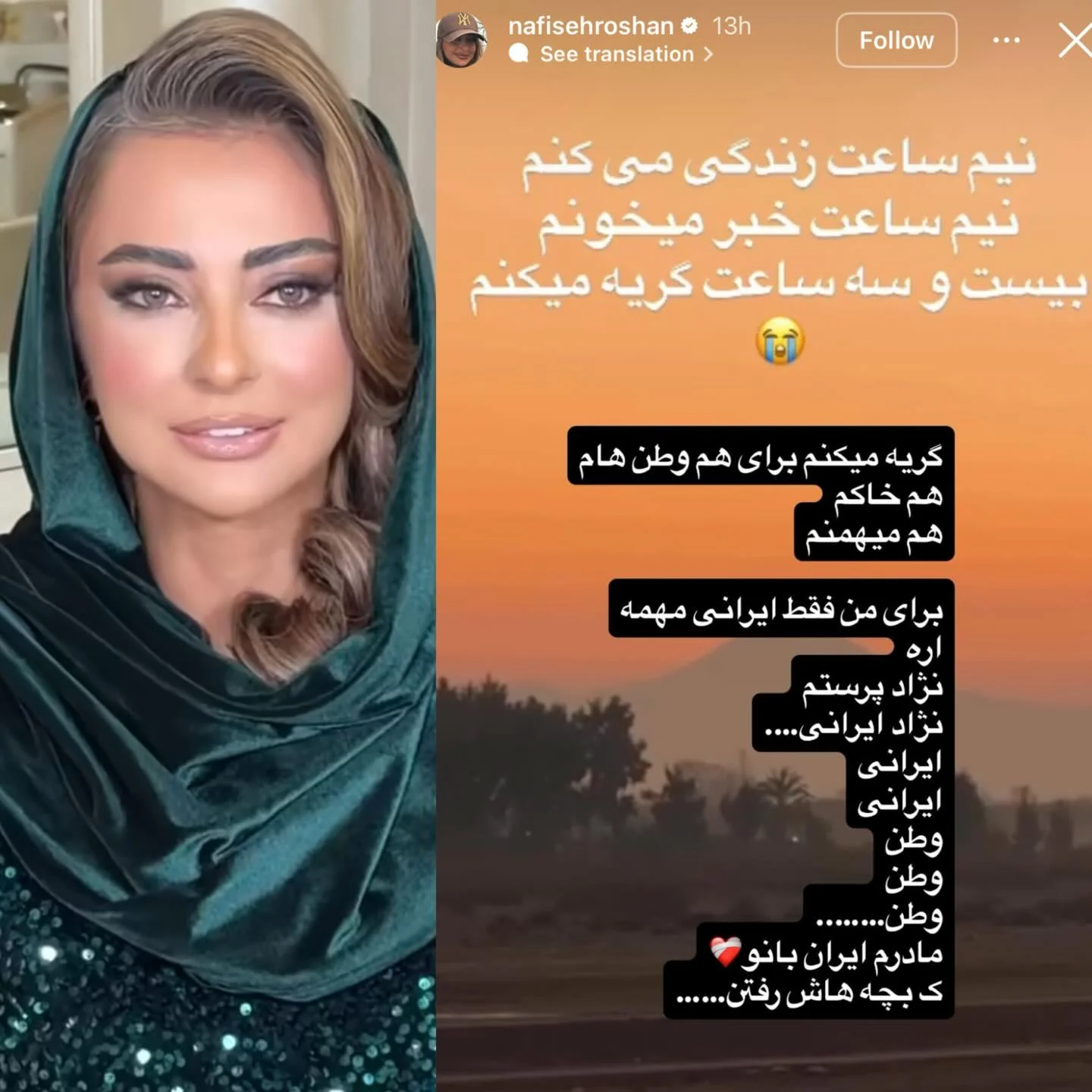 استوری تلخ نفیسه روشن بازیگر سینما و تلویزیون؛ گریه میکنم برای هم وطنانم
