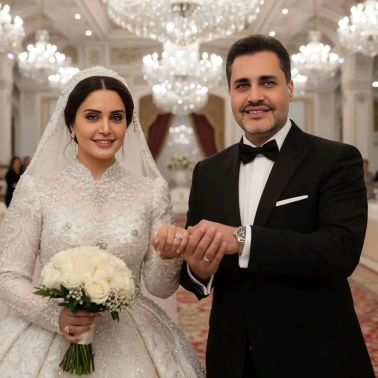 عکسی منتشر شده از هوش مصنوعی از ازدواج الناز شاکر دوست و امیرمحمد زند ببینید.