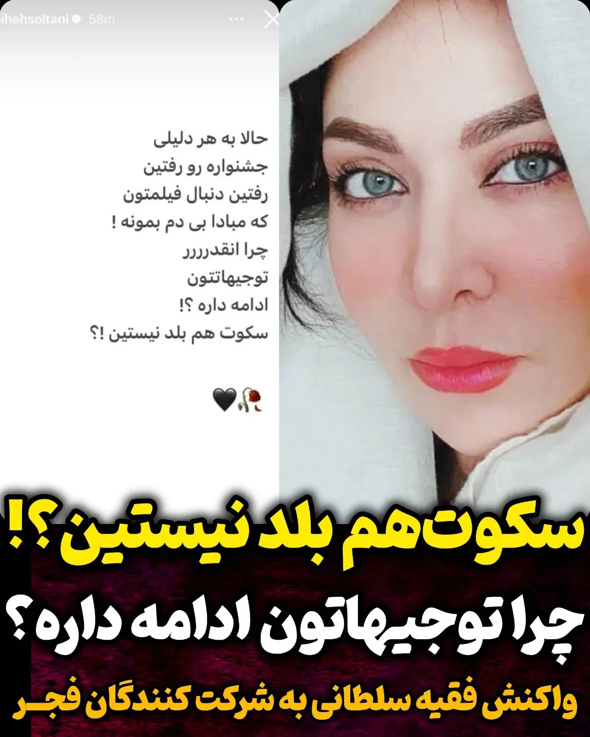 استوری فقیهه سلطانی خطاب به هنرمندان حاضر در جشنواره