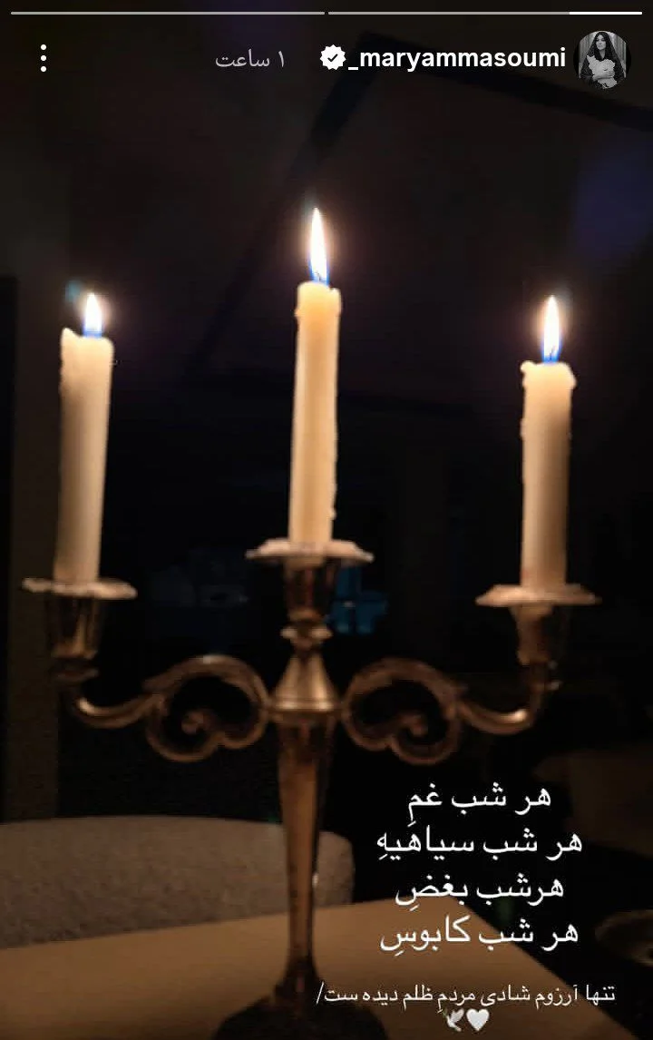 استوری غمانگیز مریم معصومی را در ادامه ببینید.