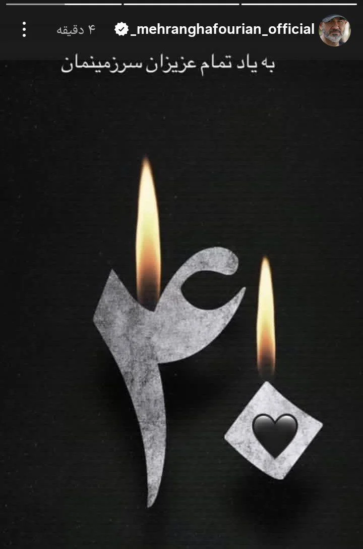 عکس| استوری مهران غفوریان به یاد هموطنان از دست رفته