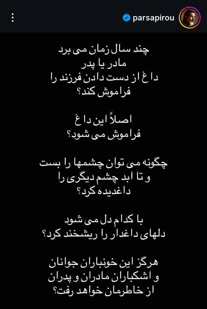 استوری| پارسا پیروزفر حرف دل همه را زد؛ این داغ فراموش میشود؟
