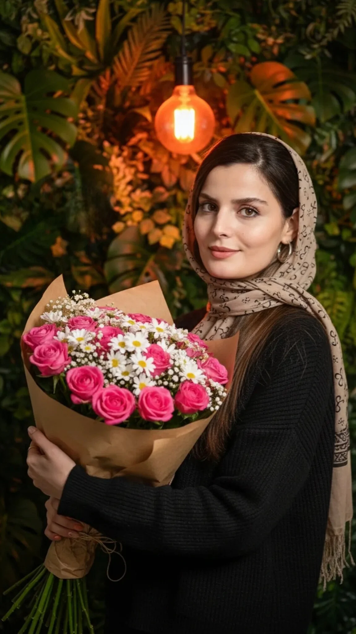 غزاله اکرمی در کافه لاکچری؛ دسته گل بزرگ از طرف کیه؟
