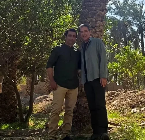 تصویری منحصر به فرد از پشتصحنه سریال «ساهره» با حضور امین زندگانی و فرهاد جم در دل نخلستانهای شهر بم، که حال و هوای خاصی از سفر در زمان را به تصویر میکشد.