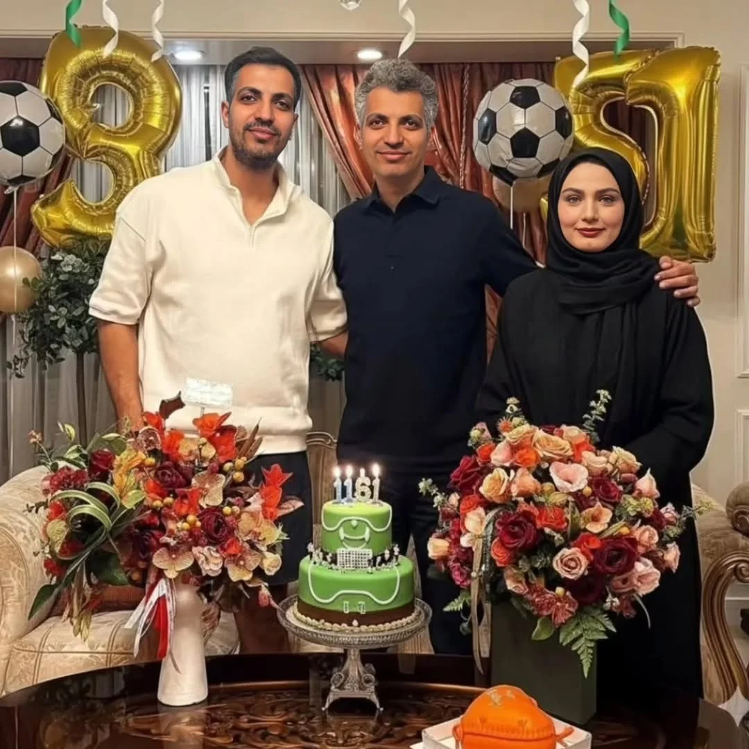 تولد عادل فردوسی پور با حضور همسر و برادرش؛ کیک فوتبالی آقای مجری جلب توجه کرد