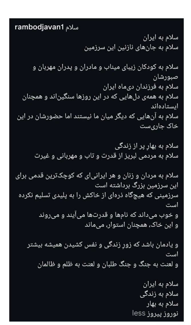 رامبد جوان با انتشار متنی نسبت به جنگ تحمیلی اسرائیل و آمریکا واکنش نشان داد.