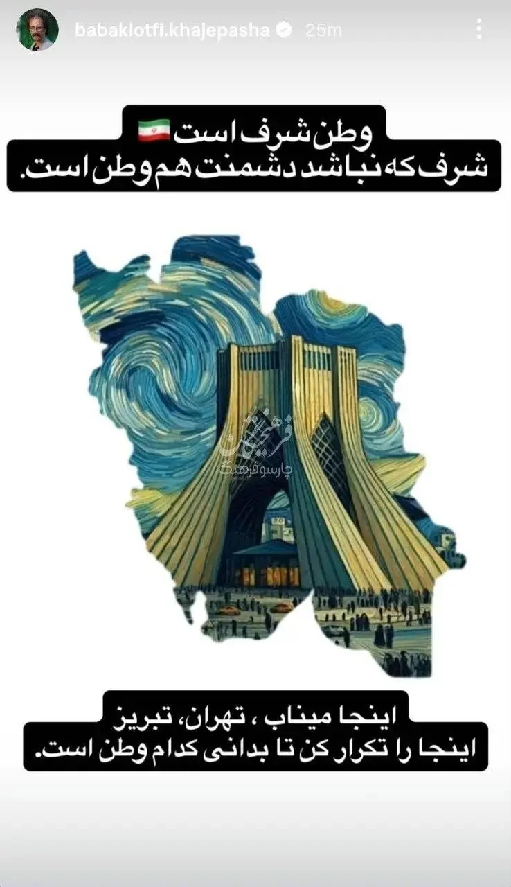 استوری| تیکه سنگین بابک خواجه پاشا، کارگردان سینما به وطن فروشان