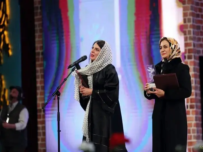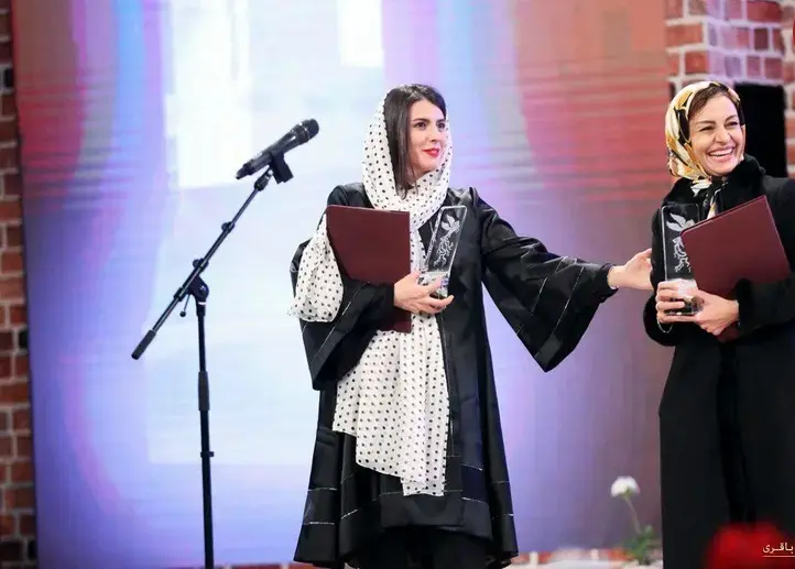 مریلا زارعی و لیلا حاتمی در لحظۀ گرفتن سیمرغ در کنار هم؛ذچه استایل زیبایی دارن