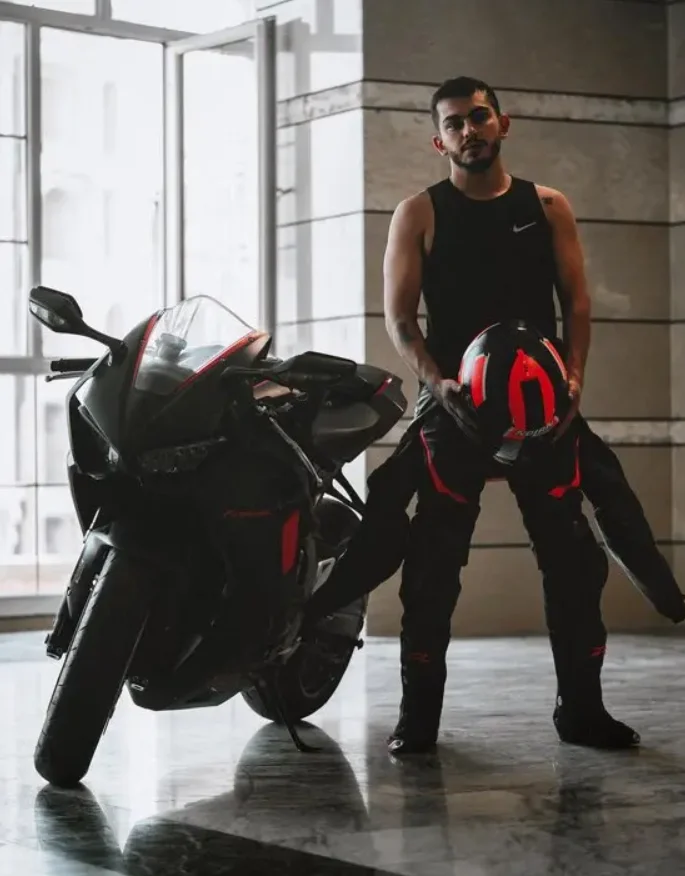 عکس| استایل اسپرت ارسلان قاسمی در موتور سواری