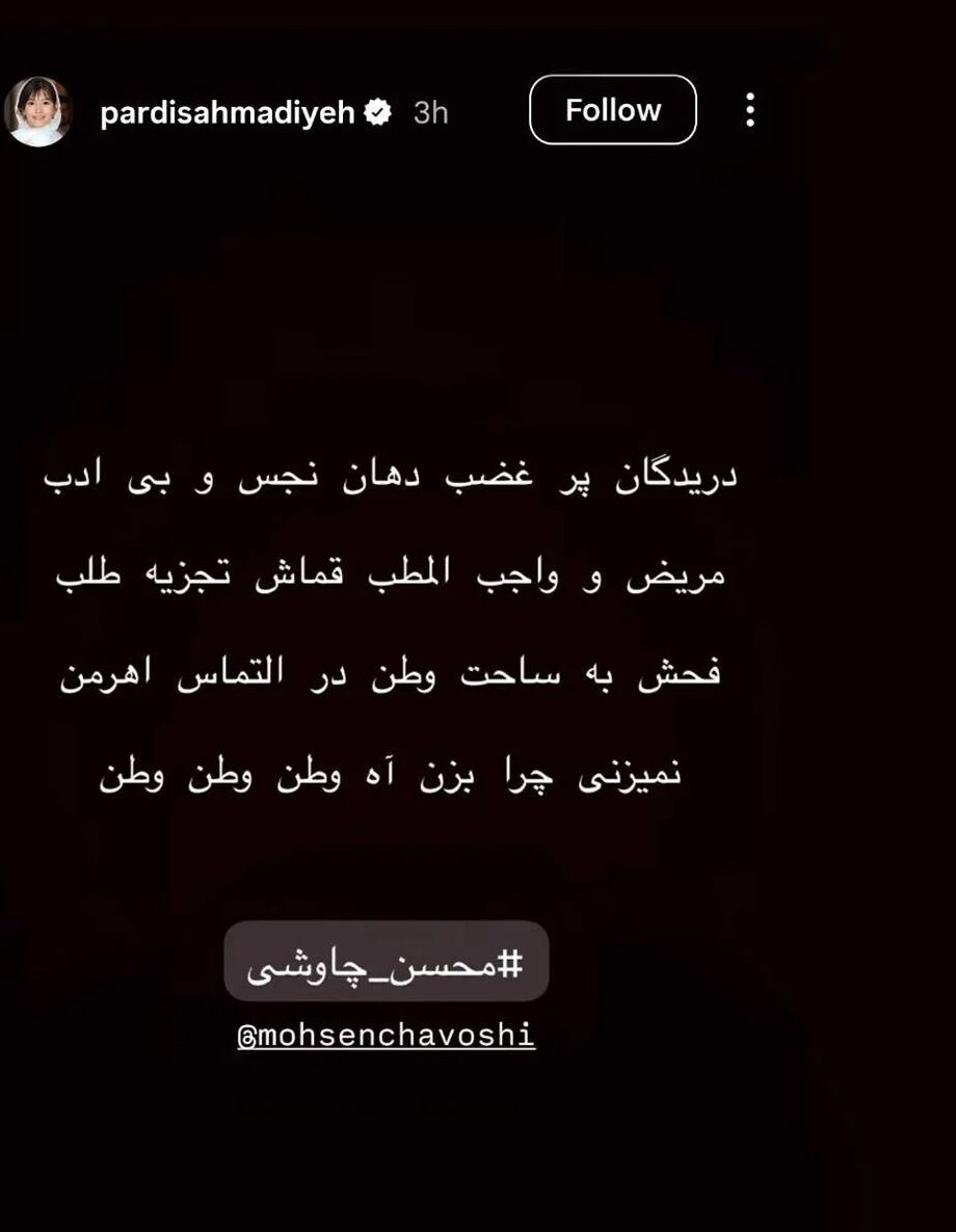 واکنش جنجالی پردیس احمدیه به جنگ اسرائیل و آمریکا با ایران