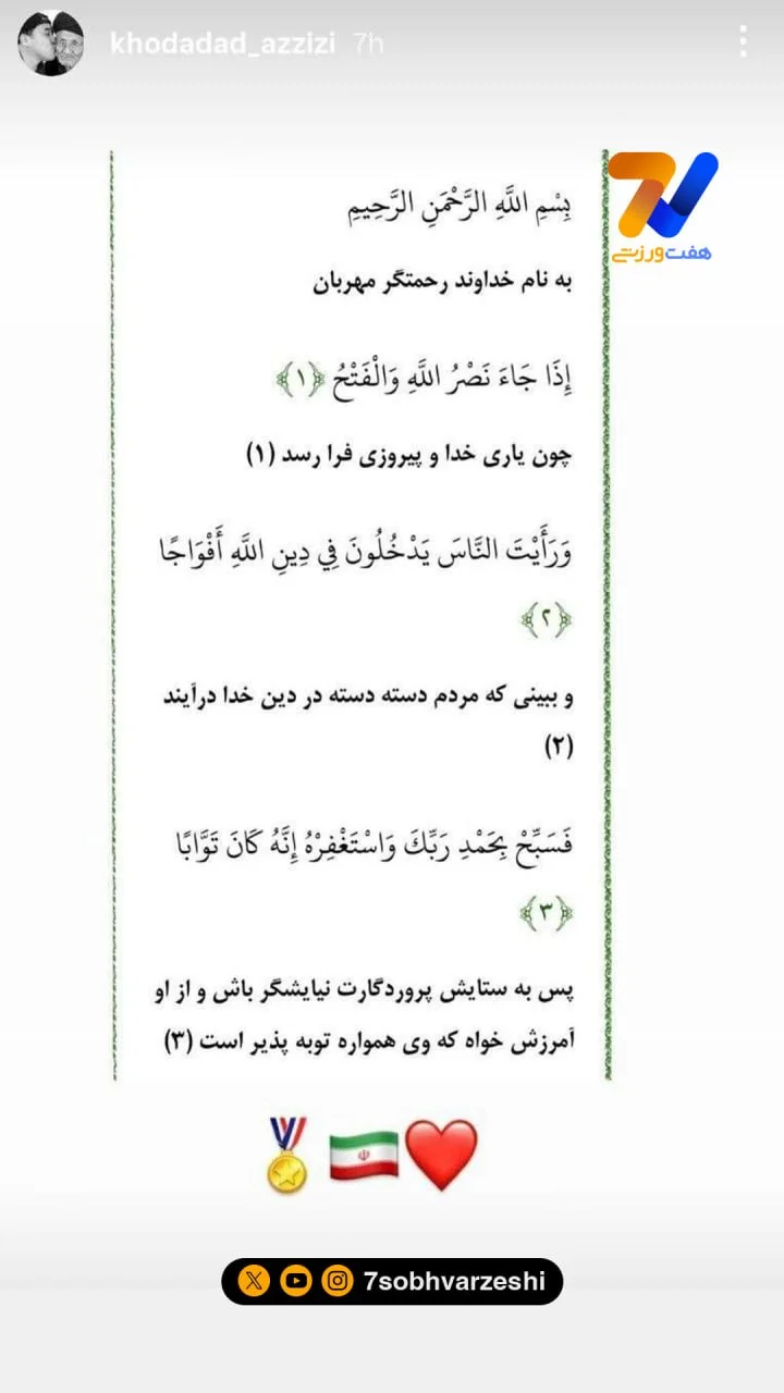 استوری خداداد عزیزی بعد از آتش بس بین ایران و آمریکا را ببینید.