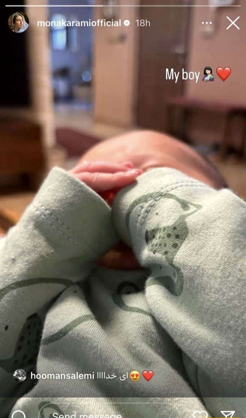 به گزارش پلاس، مونا کرمی بازیگر سینما و تلویزیون همسر سپند امیرسلیمانی یک عکس جدید از فرزند تازه متولد شدهاش را در اینستاگرام منتشر کرد.