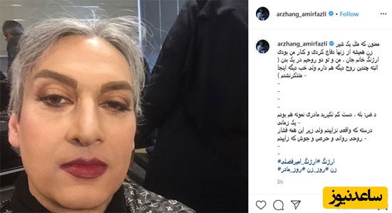 ارژنگ امیرفضلی به مناسبت روز زن پستی را در صفحه اینستاگرام خود منتشر کرد که جالب بود.