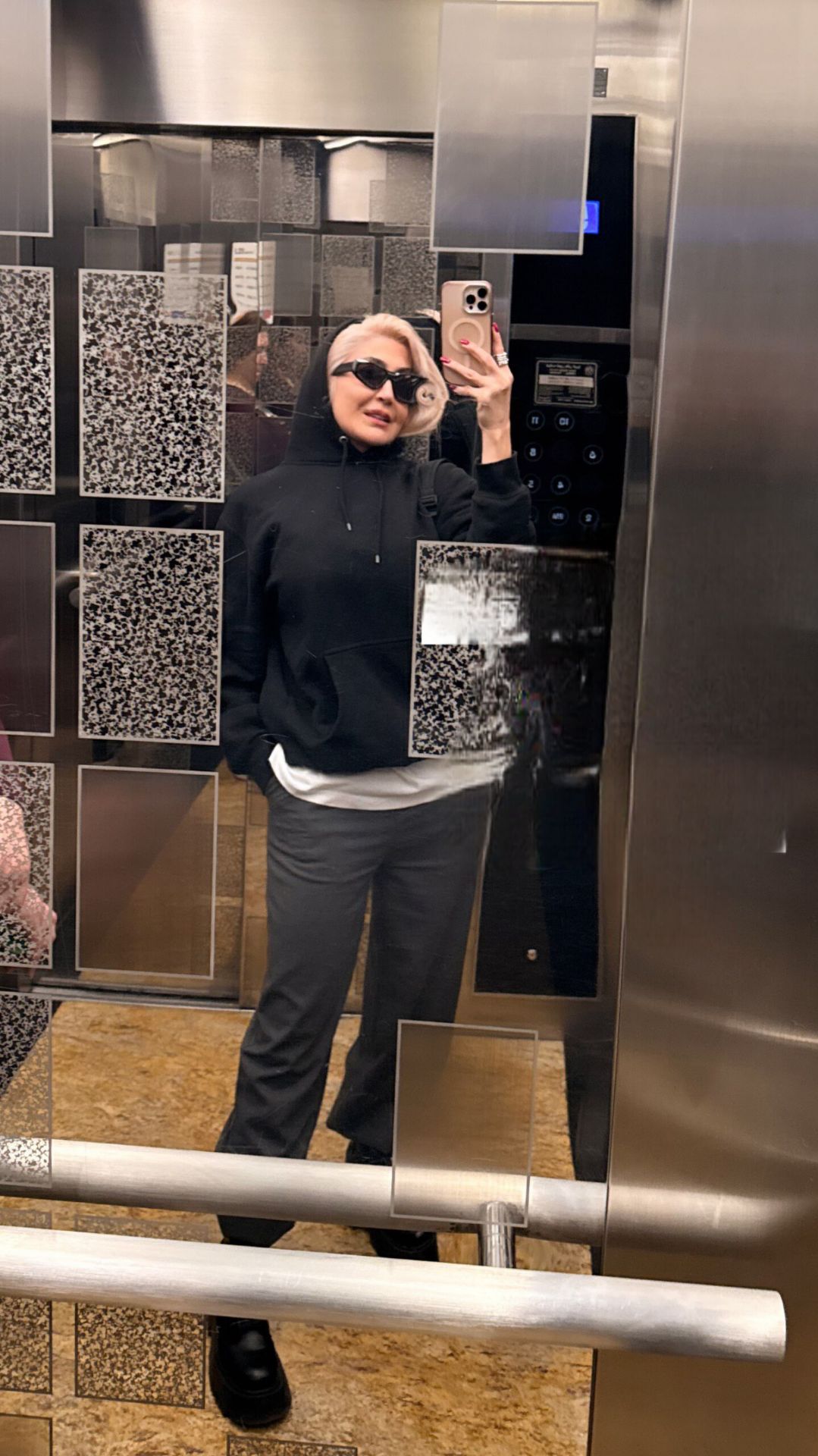 - استایل شیک و مشکی آزاده صمدی با شال پلنگی ۱۴۰۴/۰۹/۱۰