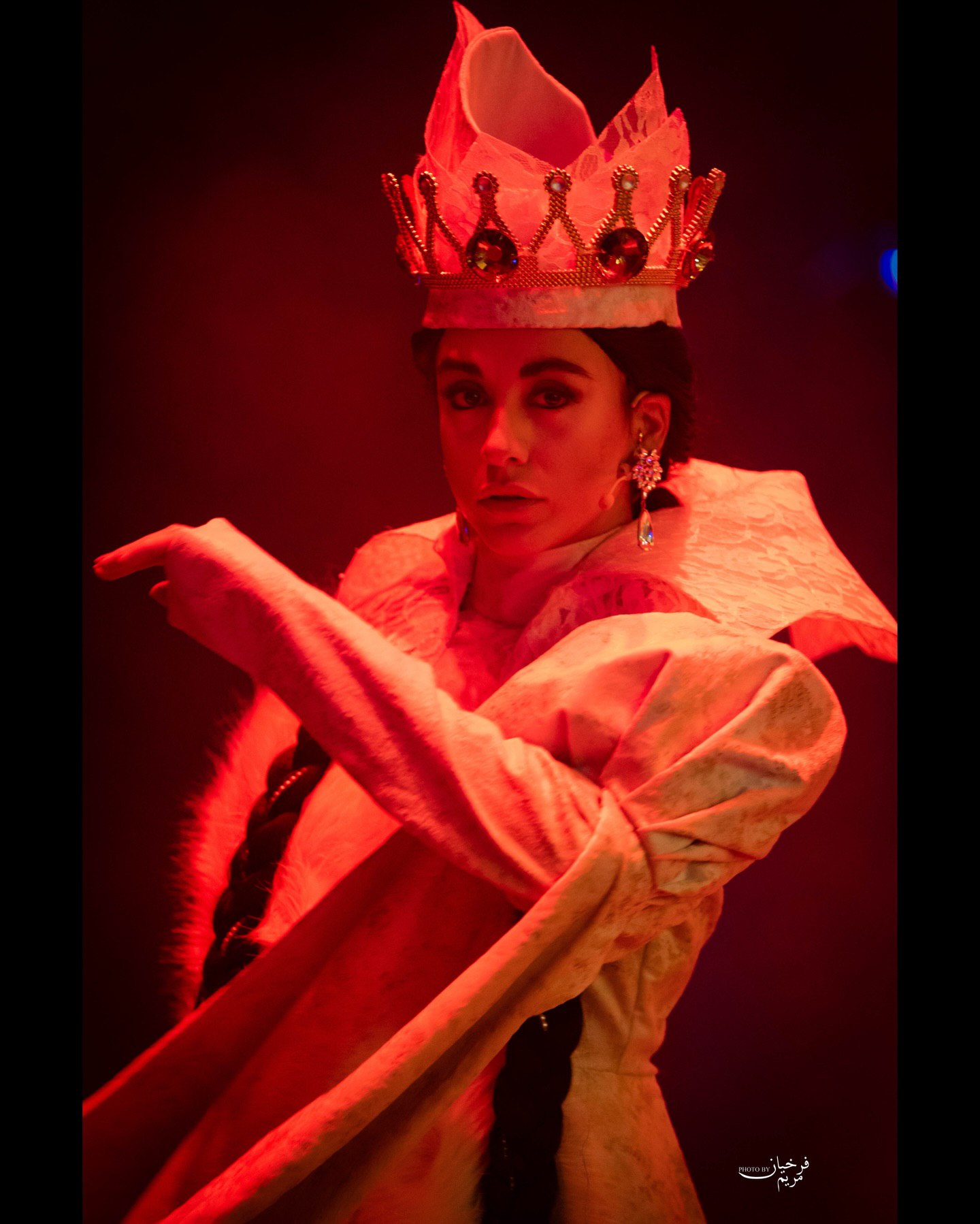 جذابیت نازنین کیوانی با لباس سفید؛ ترکیب تاج الماس و نور قرمز غوغا بهپا کرد
