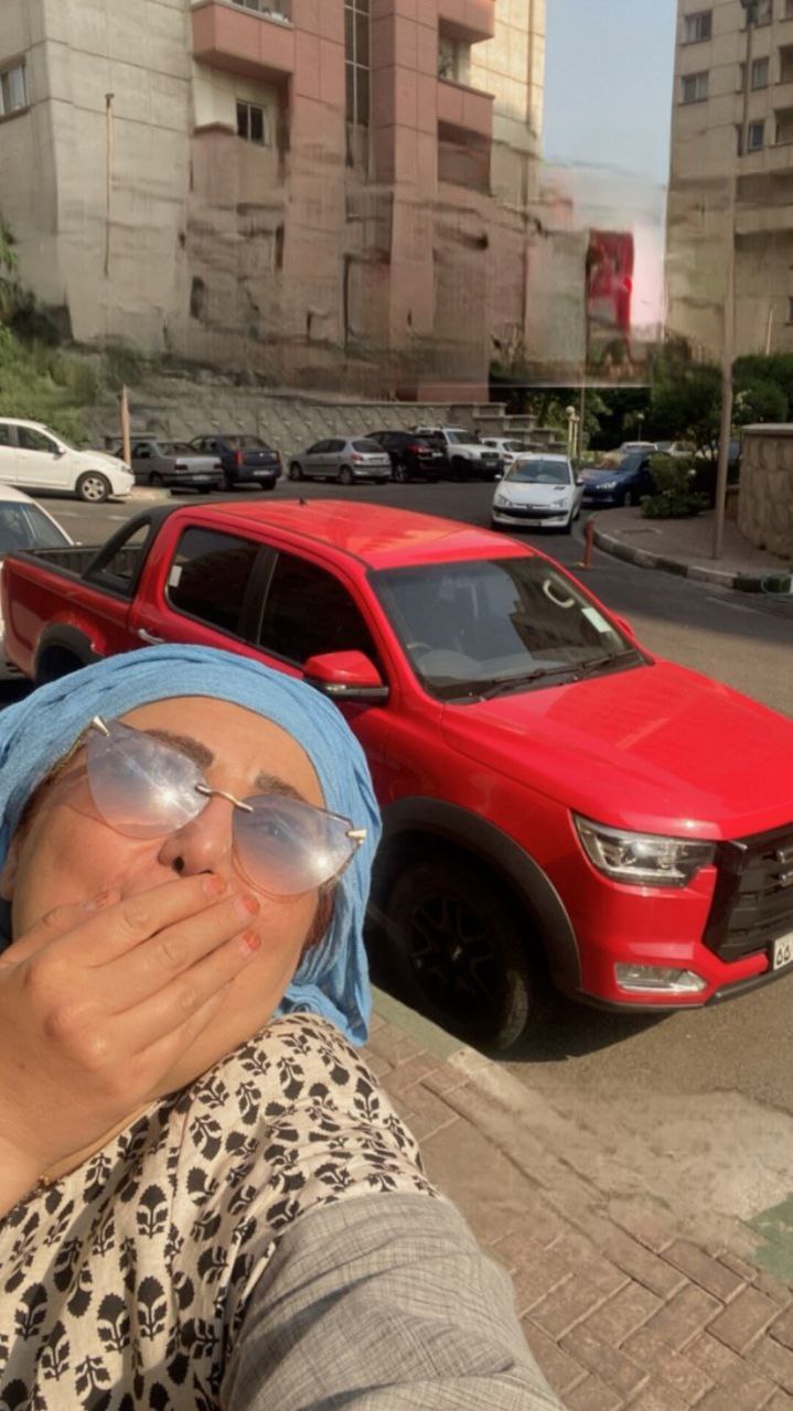 ذوق دیدنی بهنوش بختیاری کنار ماشین آلبالویی لاکچریاش / مبارکه خانم بازیگر!