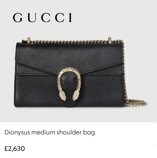 کیف Dionysus نه تنها یکی از برجستهترین طراحیهای برند گوچی است، بلکه از لحاظ رده قیمتی نیز جایگاه خاصی دارد. سایز مدیوم این کیف در مقایسه با محصولات مشابه از برندهای لاکچری دیگر، از قیمت بالاتری برخوردار است. همین ویژگی موجب شده که این کیف به نماد شکوه و سلیقهی برتر تبدیل شود. حضور بهنوش طباطبایی با چنین کیف لوکسی در کنار استایلی ساده اما مؤثر، تلفیقی از اصالت، مدرنیته و اعتماد به نفس را به نمایش گذاشت.