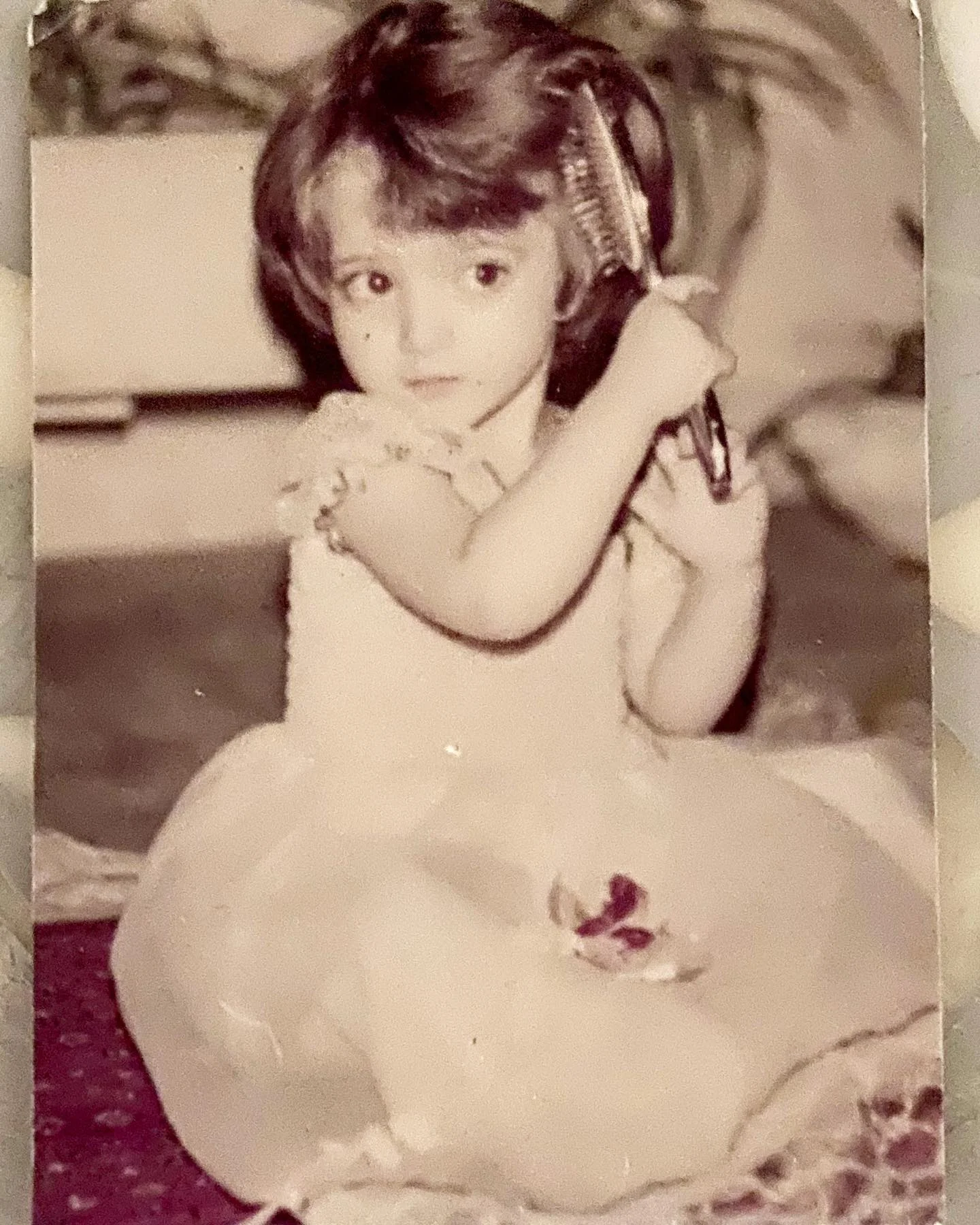 عکسی از بهنوش طباطبایی در کودکی درحال شانهکردن موهایش ببینید.