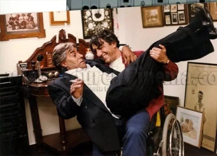 عکس بامزه از رقص تانگوی رضا کیانیان و خسرو شکیبایی روی ویلچر؛ سال 73