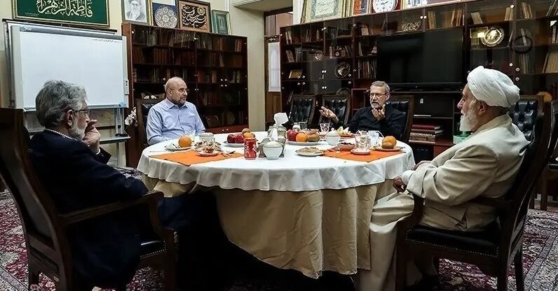 عکس| علی لاریجانی سر میز افطاری با قالیباف، ناطق نوری و حداد عادل