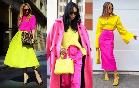 استایل مهمانی: اگر به دنبال انتخابی خاص و پرزرقوبرق برای مراسمها یا مهمانیها هستید، سرخابی و زرد بهترین گزینهها هستند. ترکیب این رنگها احساس جسارت و خوشذوقی شما را نشان میدهد. یک پیراهن بلند سرخابی با کفش و کیف زرد، ظاهری جسورانه و متفاوت ایجاد میکند. این استایل برای مهمانیهای شبانه فوقالعاده است. کت و دامن زرد با بلوز سرخابی همراه با اکسسوریهای نقرهای یا طلایی، انتخابی لوکس و خاص برای مراسم است. اگر ریسک بیشتری میپسندید، از لباسهای طرحدار استفاده کنید که هر دو رنگ در طراحی آن نقش دارند.