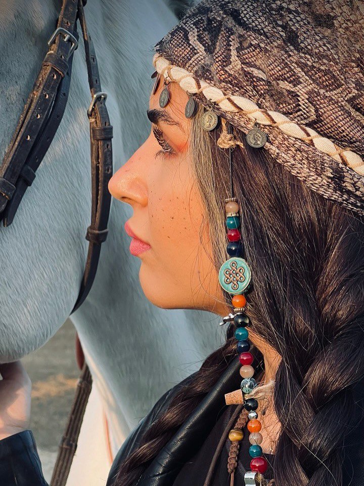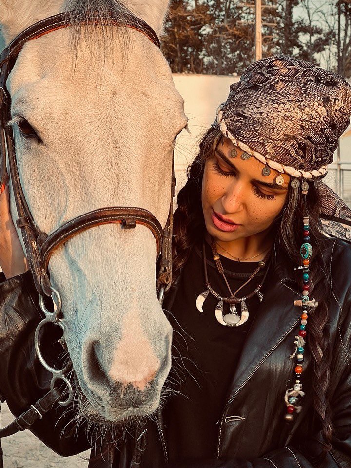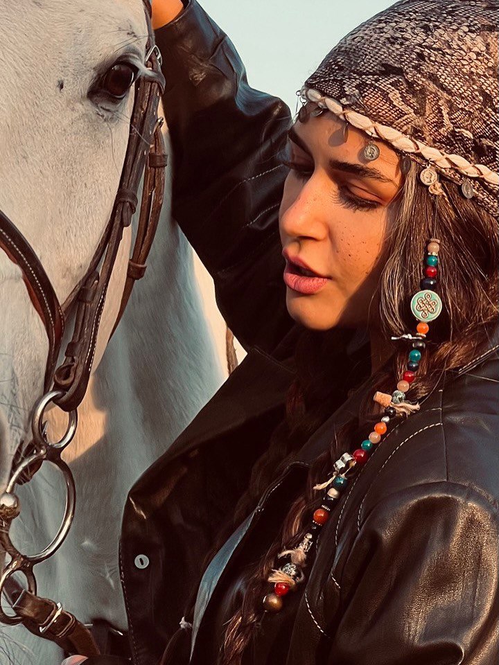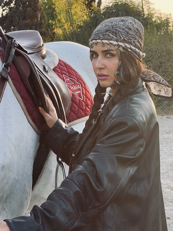جنجال ستایش موسوی با استایلی عجیب و متفاوت کنار اسبش