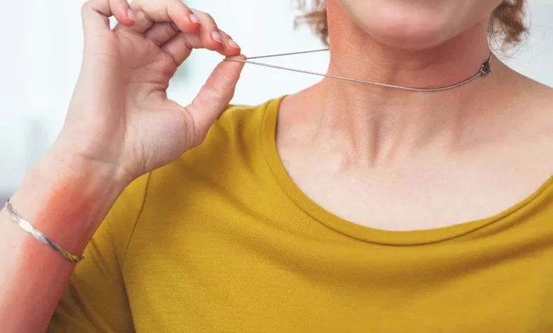 - درماتیت تماسی: درماتیت تماسی نوعی التهاب پوستی است که در اثر تماس مستقیم پوست با مواد حساسیتزا یا محرک ایجاد میشود. زیورآلات نقرهای حاوی نیکل یا سایر فلزات معمولا باعث این نوع التهاب میشوند. علائم درماتیت تماسی شامل قرمزی، خارش، تاول یا پوستریزی در ناحیه تماس است.