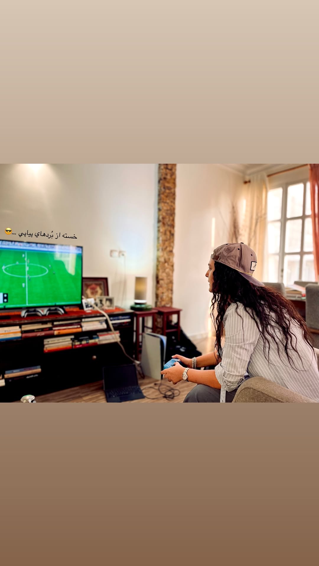 هدی زین العابدین در حال بازی فوتبال با پیاستیشن؛ خانم بازیگر چه تیپ خفنی زده