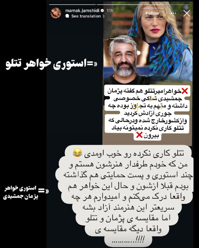 با توجه به حواشی اخیر درباره پژمان جمشیدی صحبتهای مختلفی صورت گرفت. پژمان به زندان رفت و پس از آزاد شدن به کانادا مهاجرت کرد. خواهر تتلو درباره آزادی او حرف هایی زده.