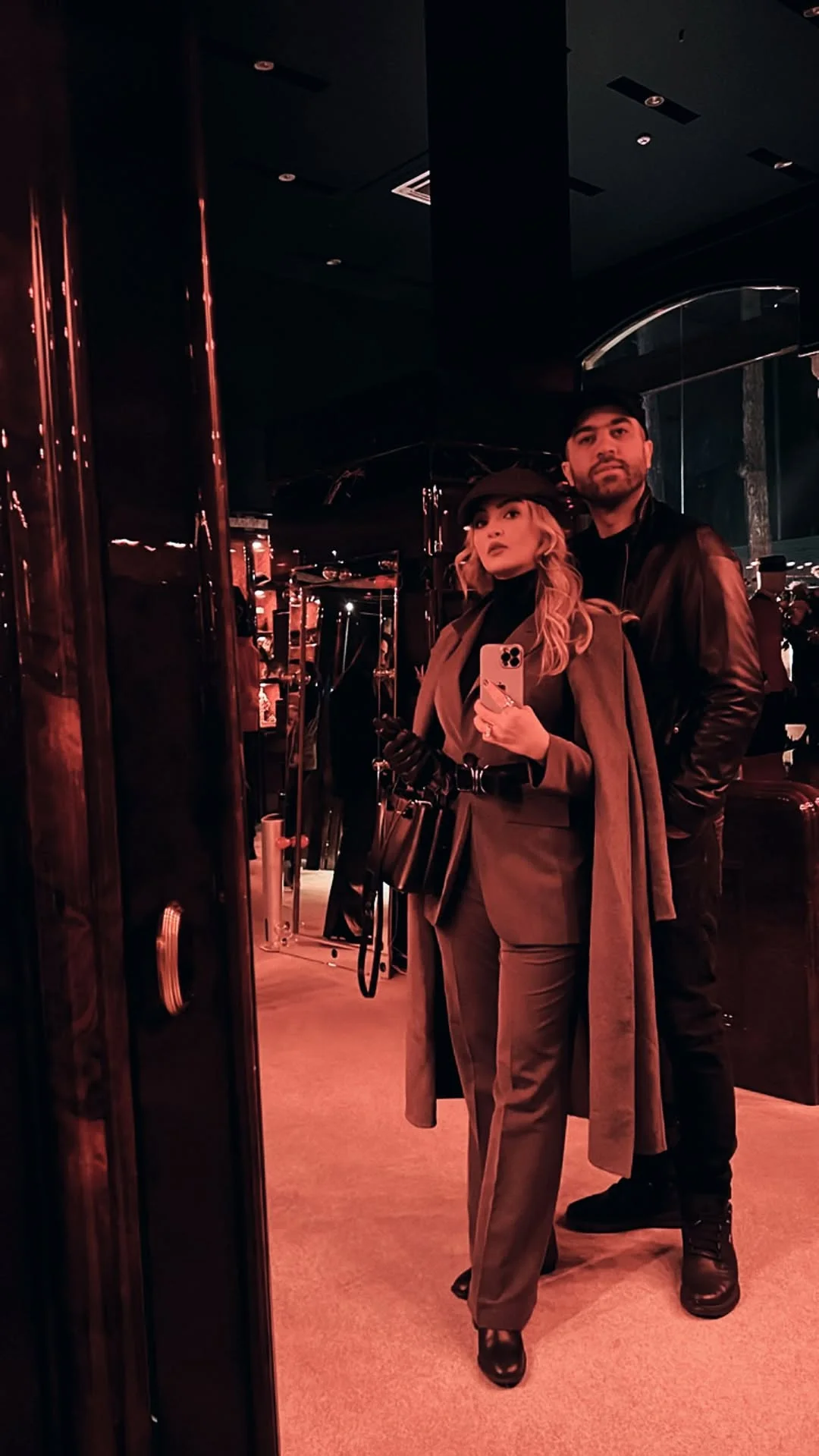 استایل جدید نیلوفر پارسا کنار همسرش به سبک کاراگاهها؛ چه کت و شلوار خفنی پوشیده!