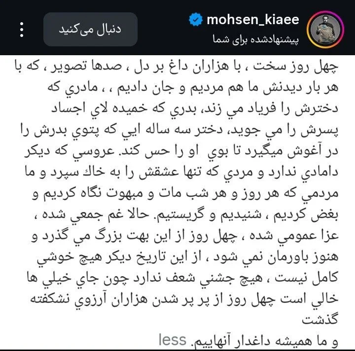 - استوری محسن کیایی که اشک همه را درآورد؛ ما همیشه داغداریم